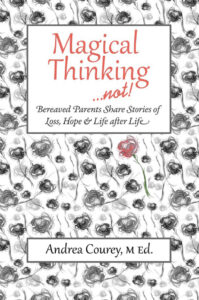 Her second book, “Magical Thinking …not!”, is the result of her work with bereaved parents and is available for free from Andrea’s website: https://andreacourey.com.